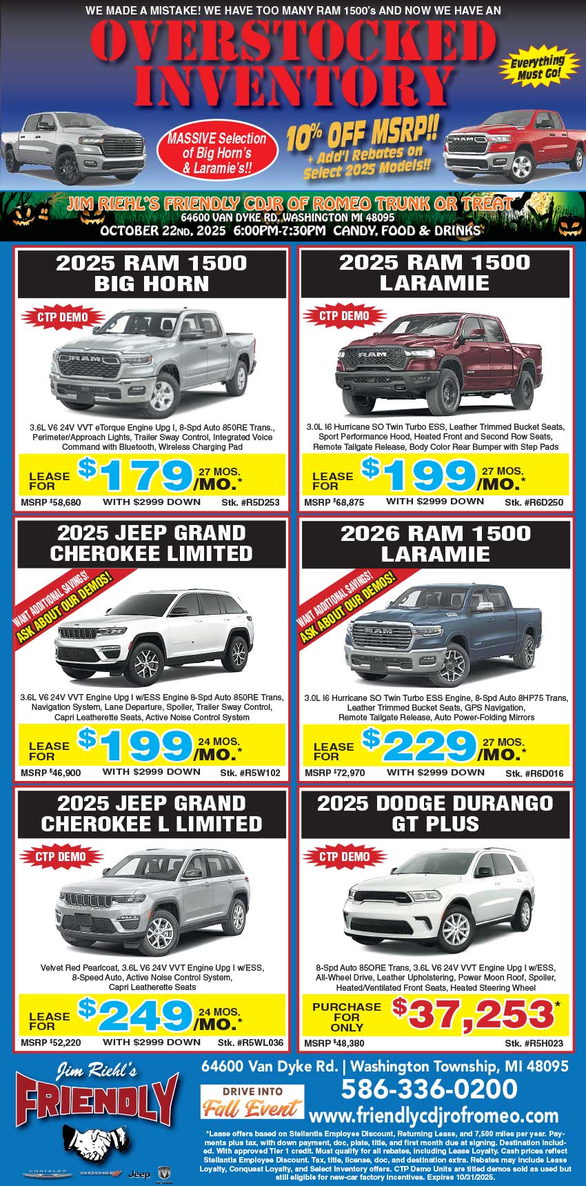 Don't miss out on these limited-time offers! Visit Jim Riehl's Friendly CDJR of Romeo today or call us to learn more about our latest deals.