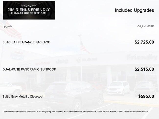 The advertised price does not include sales tax, vehicle registration fees, other fees required by law, finance charges and a $280 documentation Fee. * Images, prices, and options shown, including vehicle color, trim, options, pricing and other specifications are subject to availability, incentive offerings, current pricing and credit worthiness.