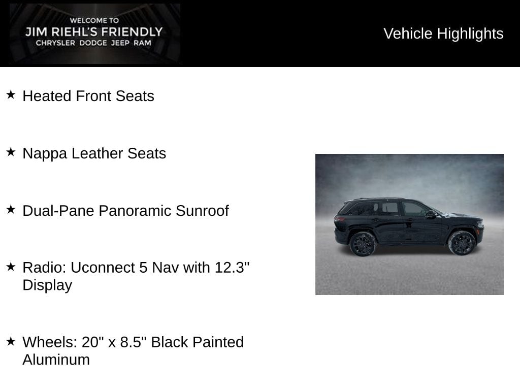 Heated Front Seats, Nappa Leather Seats, Dual-Pane Panoramic Sunroof, 4WD, Radio: Uconnect 5 Nav with 12.3 Display, Wheels: 20 x 8.5 Black Painted Aluminum.