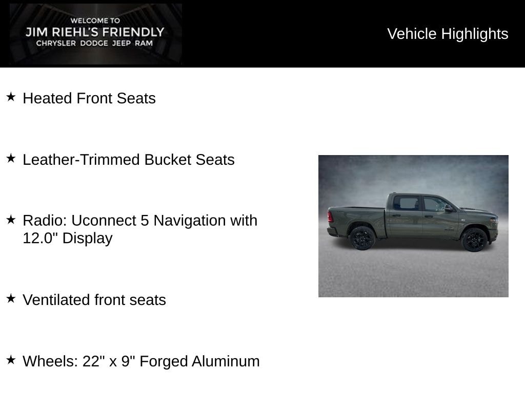 Heated Front Seats, Leather-Trimmed Bucket Seats, Radio: Uconnect 5 Navigation with 12.0 Display, Ventilated front seats, Wheels: 22 x 9 Forged Aluminum.