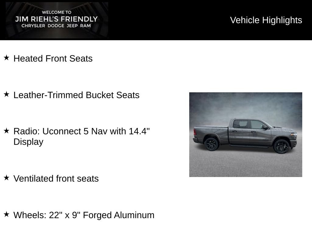 Heated Front Seats, Leather-Trimmed Bucket Seats, Radio: Uconnect 5 Nav with 14.4 Display, Ventilated front seats, Wheels: 22 x 9 Forged Aluminum.