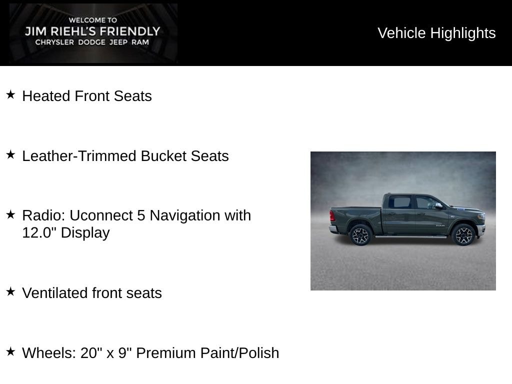 Heated Front Seats, Leather-Trimmed Bucket Seats, Radio: Uconnect 5 Navigation with 12.0 Display, Ventilated front seats, Wheels: 20 x 9 Premium Paint/Polish.