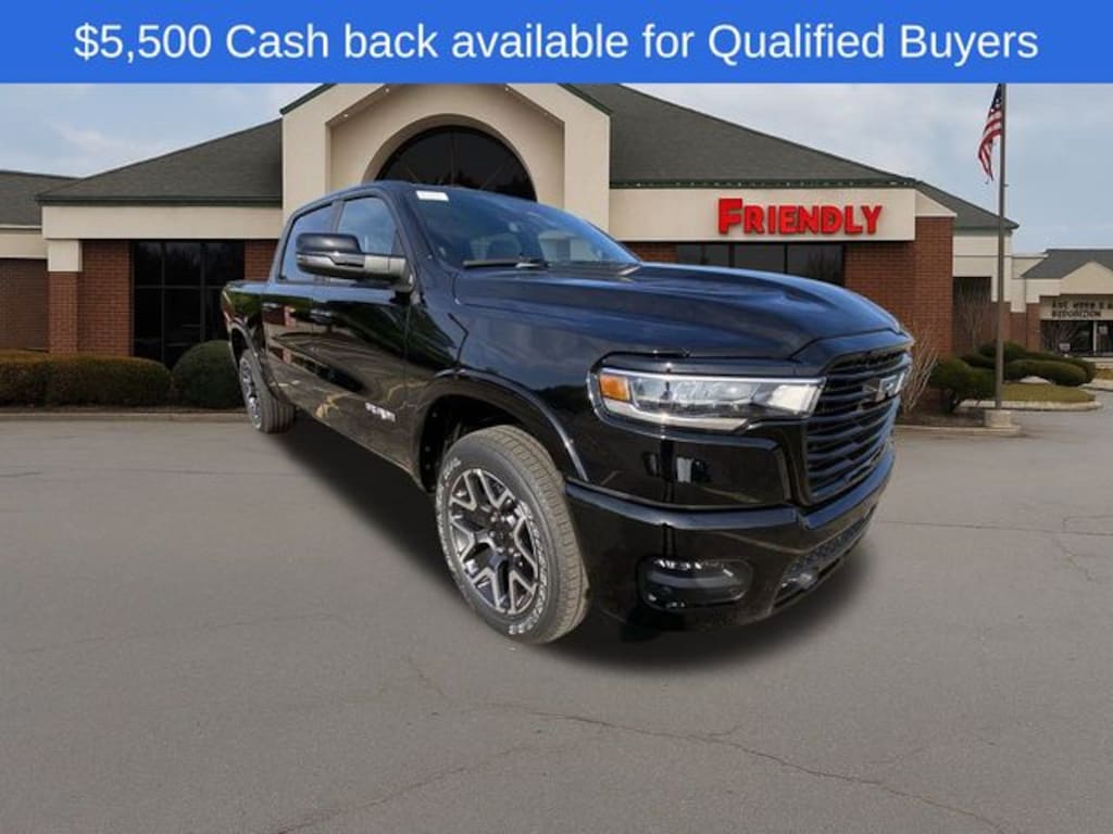 Check out all the standard equipment Laramie Level 2 Equipment Group (14.4" Touchscreen Display, 4G LTE Wi-Fi Hot Spot, Apple CarPlay, Cluster 12" TFT Color Display, Connected Travel & Traffic Services, Connectivity - US/Canada, Disassociated Touchscreen Display, Dual Wireless Charging Pad, Front Passenger Interactive Display, Global Telematics Box Module (TBM), Google Android Auto, GPS Antenna Input, GPS Navigation, harman/kardon 19 Speaker Premium Sound, HD Radio, Integrated Center Stack Radio, Integrated Voice Command w/Bluetooth, Power Tailgate, Radio: Uconnect 5 Nav w/14.4" Display, Rain Sensitive Windshield Wipers, Secondary Active Grille Shutters, SiriusXM Radio Service, SiriusXM w/360L, Smartphone As A Key Capable, and USB Host Flip), Quick Order Package 21H Laramie, Sport Appearance Package (Accent Color Premium Power Mirrors, Auto Power-Folding Mirrors, Auto-Dimming Exterior Driver Mirror, Black Interior Accents, Black Painted Exterior Mirrors Caps, Body Color Front Bumper, Body Color Rear Bumper w/Step Pads, Bridgestone Brand Tires, Convex Wide-Angle Exterior Mirror Insert, Exterior Mirrors Courtesy Lamps, Exterior Mirrors w/Heating Element, Exterior Mirrors w/Memory, Exterior Mirrors w/Supplemental Signals, Grille Surround 3 Body Color Tex 2 Black, RAM Grille Badge - Chrome, and Sport Performance Hood), 10 Speakers, 3.55 Rear Axle Ratio, 4-Wheel Disc Brakes, ABS brakes, Active Noise Control System, Air Conditioning, Alloy wheels, AM/FM radio: SiriusXM with 360L, Apple CarPlay/Android Auto, Audio memory, Auto High-beam Headlights, Auto-dimming door mirrors, Auto-dimming Rear-View mirror, Automatic temperature control, Brake assist, Bumpers: chrome, Chrome Exterior Mirrors, Compass, Delay-off headlights, Driver door bin, Driver vanity mirror, Dual front impact airbags, Dual front side impact airbags, Electronic Stability Control, Front anti-roll bar, Front Bucket Seats, Front Center Armrest w/Storage, Front dual zone A/C, Front fog lights, Front reading lights, Front wheel independent suspension, Fully automatic headlights, Garage door transmitter, Heated door mirrors, Heated front seats, Heated rear seats, Heated steering wheel, Illuminated entry, Leather steering wheel, Leather Trimmed Bucket Seats, Low tire pressure warning, Memory seat, MOPAR Front & Rear Rubber Floor Mats, Navigation System, Occupant sensing airbag, Off-Road Information Pages, Outside temperature display, Overhead airbag, Overhead console, Panic alarm, ParkView Rear Back-Up Camera, Passenger door bin, Passenger vanity mirror, Power door mirrors, Power driver seat, Power passenger seat, Power steering, Power windows, Radio data system, Radio: Uconnect 5 Nav w/12.0" Display, Rear anti-roll bar, Rear reading lights, Rear seat center armrest, Rear step bumper, Remote keyless entry, Security system, Speed control, Split folding rear seat, Steering wheel mounted audio controls, Tachometer, Telescoping steering wheel, Til Price includes: $2000 - 2026 National Overaged Select Inventory Bonus Cash . Exp. 11/03/2025 $3500 - 2026 National Retail Consumer C