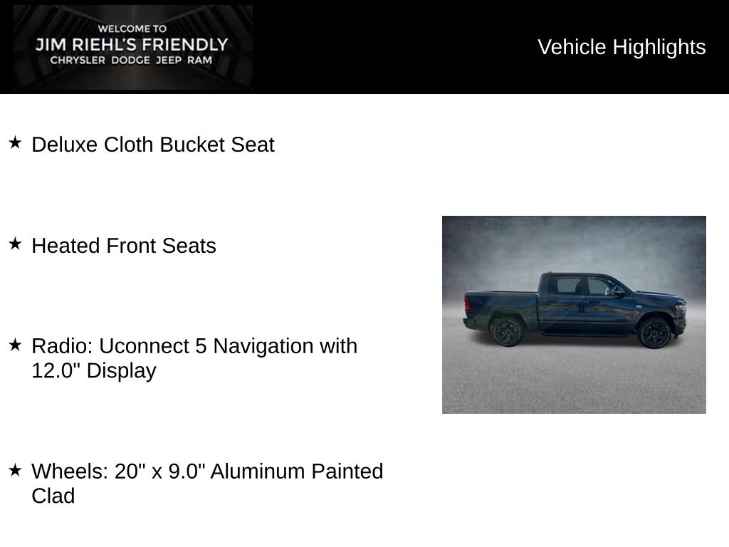 Deluxe Cloth Bucket Seat, Heated Front Seats, Radio: Uconnect 5 Navigation with 12.0 Display, Wheels: 20 x 9.0 Aluminum Painted Clad.