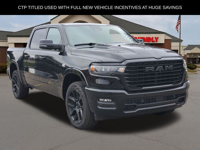 Check out all the standard equipment Laramie Level 1 Equipment Group (Rain Sensitive Windshield Wipers and Remote Tailgate Release), Night Edition (Accent Color Door Handles, Accent Color Premium Power Mirrors, Accent Color Tailgate Handle, Anti-Spin Differential Rear Axle, Auto Power-Folding Mirrors, Auto-Dimming Exterior Driver Mirror, Black Exterior Truck Badging, Black Headlamp Bezels, Black Interior Accents, Black Painted Exterior Mirrors Caps, Black Tail Lamp Bezels, Body Color Front Bumper, Body Color Rear Bumper with Step Pads, Convex Wide-Angle Exterior Mirror Insert, Dual Exhaust with Black Tips, Exterior Mirrors Approach Lamps, Exterior Mirrors Courtesy Lamps, Exterior Mirrors with Heating Element, Exterior Mirrors with Memory, Exterior Mirrors with Supplemental Signals, Grille Surround 3 Black Texture 2 Black, Pirelli Brand Tires, Proximity Approach/Departure Lamps, RAM Grille Badge - Black, Sport Performance Hood, and Wheels: 22" x 9" Forged Aluminum), Quick Order Package 27H Laramie, 10 Speakers, 4-Wheel Disc Brakes, 4G LTE Wi-Fi Hot Spot, ABS brakes, Active Noise Control System, Adjustable pedals, Air Conditioning, Alloy wheels, AM/FM radio: SiriusXM with 360L, Apple CarPlay/Android Auto, Audio memory, Auto High-beam Headlights, Auto-dimming door mirrors, Auto-dimming Rear-View mirror, Automatic temperature control, Brake assist, Bumpers: chrome, Chrome Exterior Mirrors, Compass, Connected Travel and Traffic Services, Connectivity - US/Canada, Delay-off headlights, Driver door bin, Driver vanity mirror, Dual front impact airbags, Dual front side impact airbags, Electronic Stability Control, Front anti-roll bar, Front Bucket Seats, Front Center Armrest w/Storage, Front dual zone A/C, Front fog lights, Front reading lights, Front wheel independent suspension, Fully automatic headlights, Garage door transmitter, GPS Navigation, Heated door mirrors, Heated front seats, Heated rear seats, Heated steering wheel, Illuminated entry, Integrated Center Stack Radio, Integrated Voice Command with Bluetooth, Leather steering wheel, Leather Trimmed Bucket Seats, Low tire pressure warning, Manufacturer's Statement of Origin, Memory seat, MOPAR Front and Rear Rubber Floor Mats, MyFlexCare Service Plan, Navigation System, Occupant sensing airbag, Off-Road Information Pages, Outside temperature display, Overhead airbag, Overhead console, Panic alarm, ParkView Rear Back-Up Camera, Passenger door bin, Passenger vanity mirror, Pedal memory, Power door mirrors, Power driver seat, Power passenger seat, Power steering, Power windows, Radio data system, Radio: Uconnect 5 Navigation with 12.0" Display, RAM Grille Badge - Chrome, Rear anti-roll bar, Rear reading lights, Rear seat center armrest, Rear step bumper, Remote keyless entry, Security system, SiriusXM Radio Service, SiriusXM with 360L, Speed control, Split folding rear seat, Steering wheel mounted audio controls, Tacho Price includes: $2000 - 2026 National SFS Lease Loyalty Bonus Cash . Exp. 04/30/2026 $500 - 2026 Great Lakes BC Bonus C