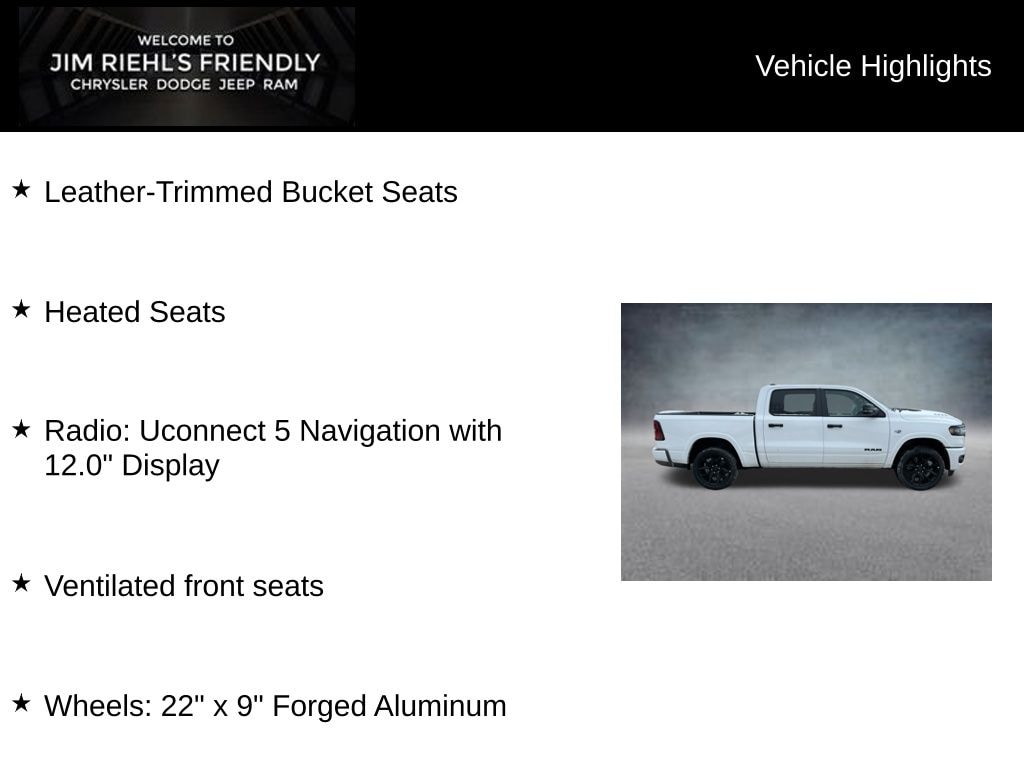 Leather-Trimmed Bucket Seats, Heated Seats, Radio: Uconnect 5 Navigation with 12.0 Display, Ventilated front seats, Wheels: 22 x 9 Forged Aluminum.