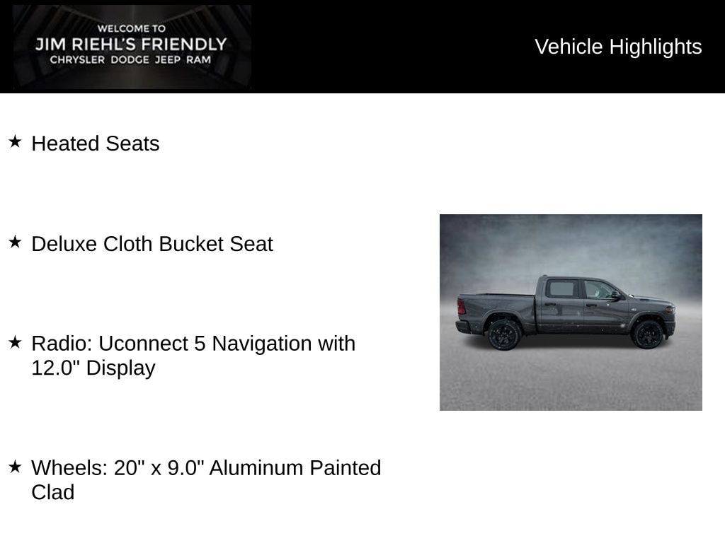Heated Seats, Deluxe Cloth Bucket Seat, Radio: Uconnect 5 Navigation with 12.0 Display, Wheels: 20 x 9.0 Aluminum Painted Clad.