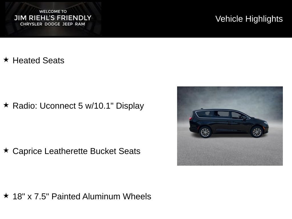 Heated Seats, 18 x 7.5 Painted Aluminum Wheels, Caprice Leatherette Bucket Seats, Radio: Uconnect 5 w/10.1 Display.