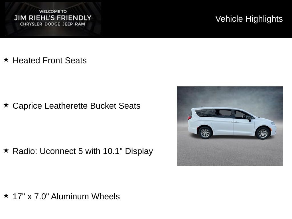 Heated Front Seats, Caprice Leatherette Bucket Seats, 17 x 7.0 Aluminum Wheels, Radio: Uconnect 5 with 10.1 Display.