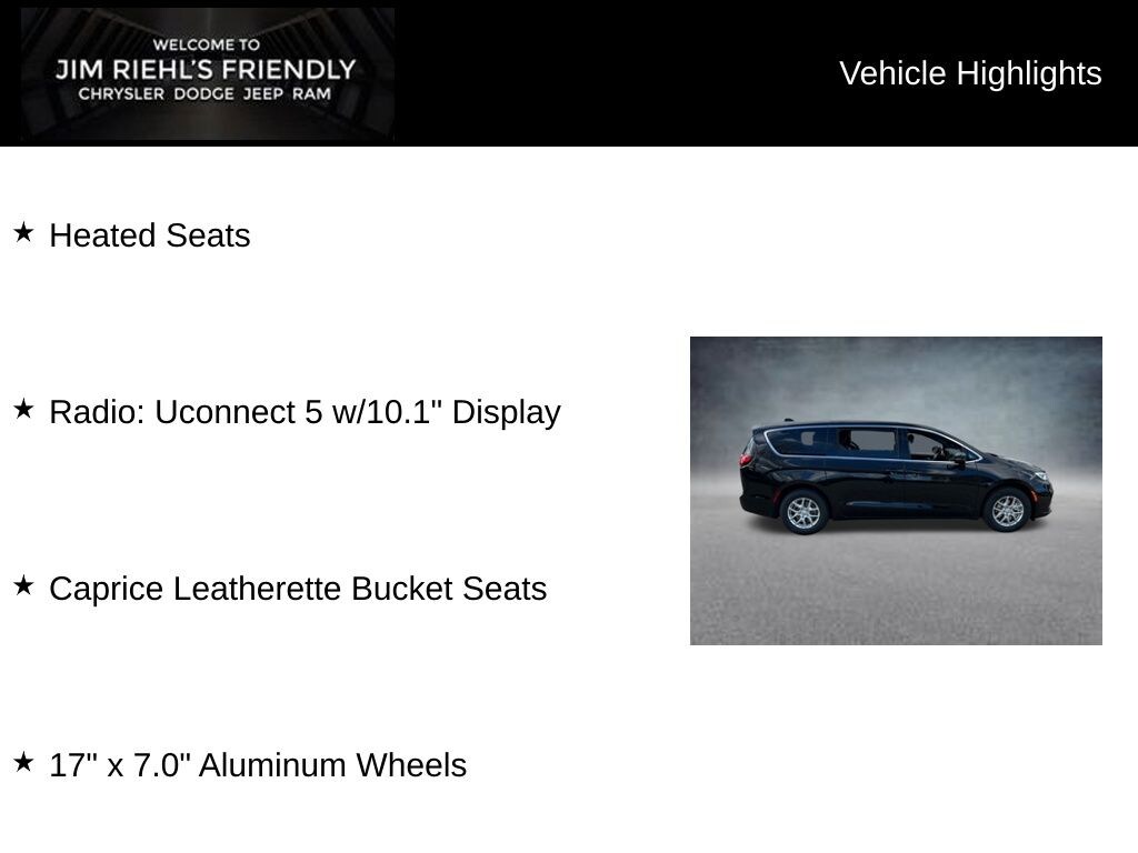 Heated Seats, 17 x 7.0 Aluminum Wheels, Caprice Leatherette Bucket Seats, Radio: Uconnect 5 w/10.1 Display.