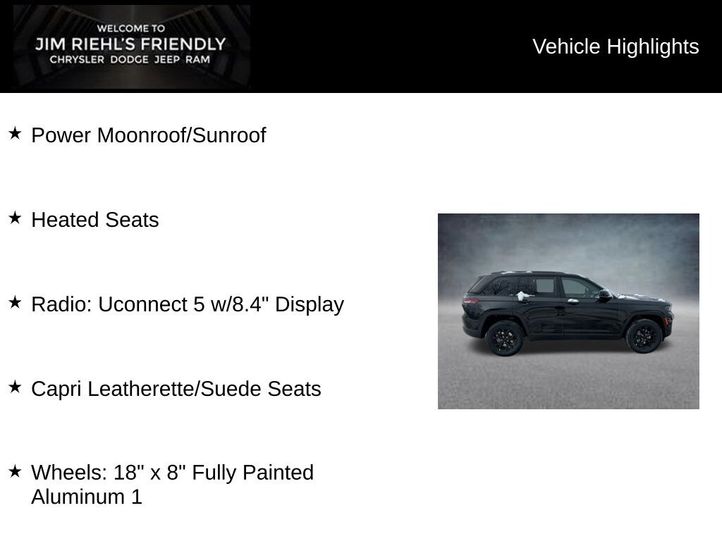 Power Moonroof/Sunroof, Heated Seats, 4WD, Capri Leatherette/Suede Seats, Radio: Uconnect 5 w/8.4 Display, Wheels: 18 x 8 Fully Painted Aluminum 1.