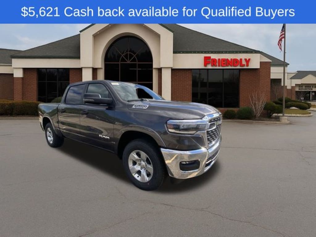 Check out all the standard equipment Big Horn Level 1 Equipment Group (115V Auxiliary Power Outlet, 2nd Row In Floor Storage Bins, 400W Inverter, Auto Power-Folding Mirrors, Auto-Dimming Exterior Driver Mirror, Auto-Dimming Rear-View Mirror, Black Exterior Mirrors, Black Premium Power Mirrors, Convex Wide-Angle Exterior Mirror Insert, Exterior Mirrors Courtesy Lamps, Exterior Mirrors w/Heating Element, Exterior Mirrors w/Supplemental Signals, Glove Box Lamp, Heated Front Seats, Heated Steering Wheel, Leather Wrapped Steering Wheel, Power 2-Way Driver Lumbar Adjust, Power Adjust 8-Way Driver Seat, Power Adjustable Pedals, Rear Power Sliding Window, Rear Window Defroster, Steering Wheel Mounted Audio Controls, Sun Visors w/Illuminated Vanity Mirrors, and Universal Garage Door Opener), Quick Order Package 23Z Big Horn (Big Horn Badge), 3 Rear Seat Head Restraints, 3.21 Rear Axle Ratio, 4 Way Front Headrests, 4-Wheel Disc Brakes, 4G LTE Wi-Fi Hot Spot, 6 Speakers, ABS brakes, Air Conditioning, Alloy wheels, AM/FM radio, Apple CarPlay/Android Auto, Auto High-beam Headlights, Brake assist, Bumpers: chrome, Cloth Bench Seat, Compass, Connectivity - US/Canada, Delay-off headlights, Driver door bin, Dual front impact airbags, Dual front side impact airbags, Electronic Stability Control, Front anti-roll bar, Front Center Armrest w/Storage, Front fog lights, Front reading lights, Front Seat Back Map Pockets, Front wheel independent suspension, Fully automatic headlights, GPS Antenna Input, Heated door mirrors, Illuminated entry, Integrated Voice Command w/Bluetooth, Low tire pressure warning, Manual Adjust 4-Way Front Passenger Seat, Manual Folding Exterior Mirrors, Manufacturer's Statement of Origin, Occupant sensing airbag, Outside temperature display, Overhead airbag, Overhead console, Panic alarm, ParkView Rear Back-Up Camera, Passenger door bin, Passenger vanity mirror, Power door mirrors, Power steering, Power windows, Radio data system, Radio: Uconnect 5 W w/8.4" Display, RAM Grille Badge - Chrome, Rear 60/40 Folding Seat, Rear anti-roll bar, Rear seat center armrest, Rear step bumper, Remote keyless entry, Speed control, Split folding rear seat, Supplier Part Tracking (J-1), Tachometer, Telescoping steering wheel, Tilt steering wheel, Traction control, Trip computer, USB Host Flip, Variably intermittent wipers, Voltmeter, and Wheels: 18" x 8" Cast-Aluminum Painted. Price includes: 10% Msrp - 2025 National 10% Below MSRP . Exp. 11/03/2025