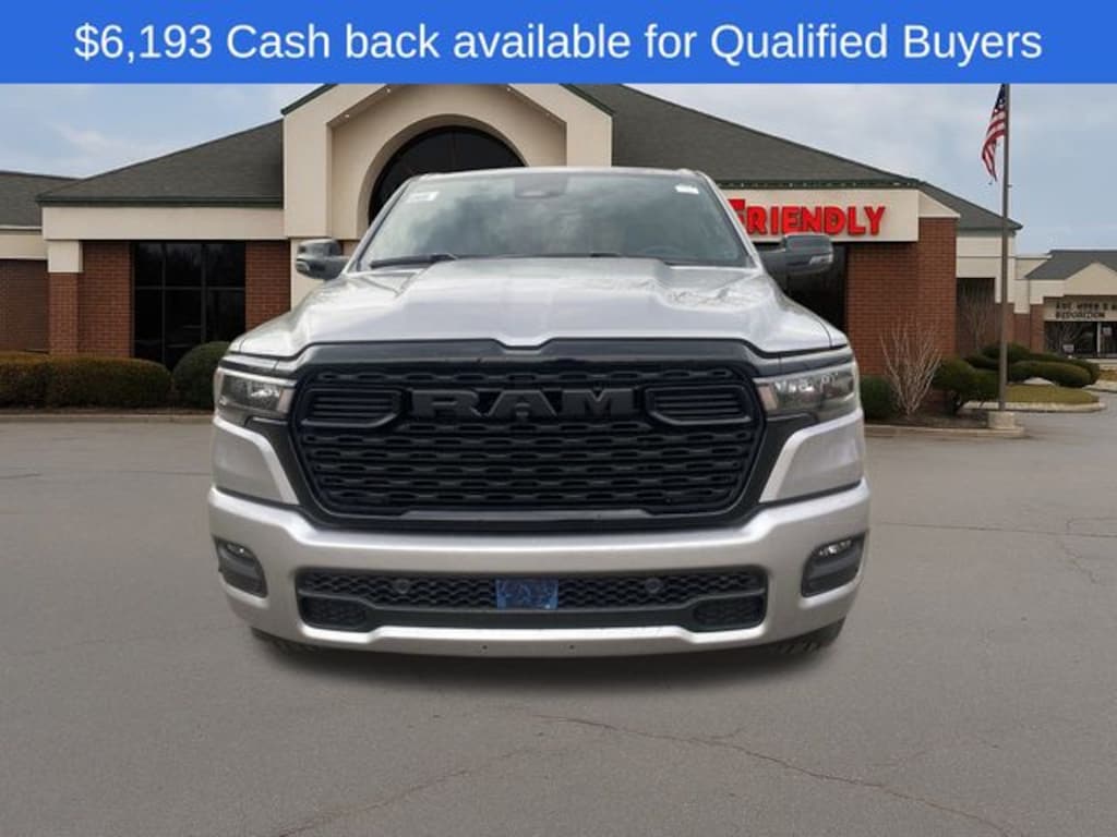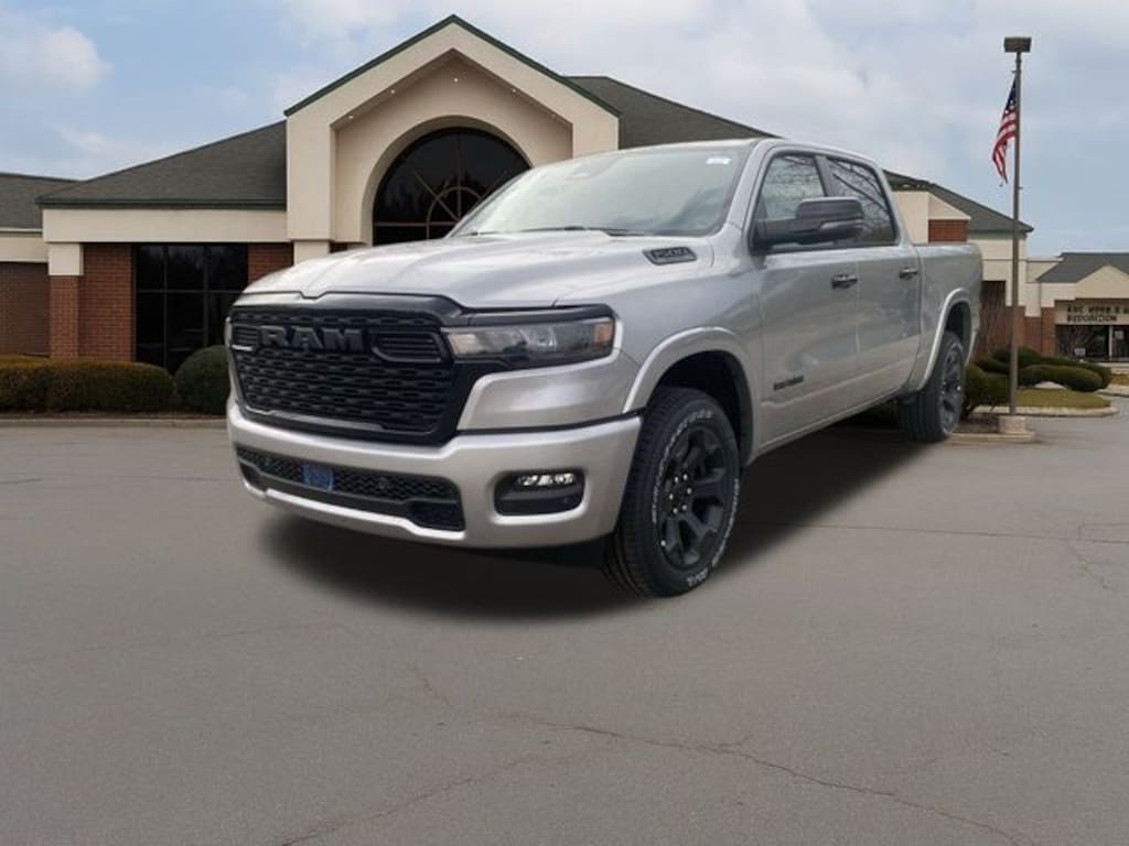Check out all the standard equipment Big Horn Level 2 Equipment Group (115V Auxiliary Power Outlet, 115V Auxiliary Rear Power Outlet, 12" Touchscreen Display, 2nd Row In Floor Storage Bins, 400W Inverter, 4G LTE Wi-Fi Hot Spot, 9 Amplified Speakers w/Subwoofer, Air Conditioning ATC w/Dual Zone Control, Apple CarPlay, Auto Power-Folding Mirrors, Auto-Dimming Exterior Driver Mirror, Auto-Dimming Rear-View Mirror, Black Exterior Mirrors, Black Premium Power Mirrors, Cluster 7.0" TFT Color Display, Configurable Drive Mode, Connected Travel & Traffic Services, Connectivity - US/Canada, Convex Wide-Angle Exterior Mirror Insert, Exterior Mirrors Courtesy Lamps, Exterior Mirrors w/Heating Element, Exterior Mirrors w/Supplemental Signals, Glove Box Lamp, Google Android Auto, GPS Antenna Input, GPS Navigation, HD Radio, Heated Front Seats, Heated Steering Wheel, Integrated Voice Command w/Bluetooth, Leather Wrapped Steering Wheel, LED Dome Lamp w/On/Off Switch, LED Footwell Lighting, Media Hub w/2 Charge Only USBs, Overhead LED Lamps, Power 2-Way Driver Lumbar Adjust, Power Adjust 8-Way Driver Seat, Power Adjustable Pedals, Premium Overhead Console, Radio: Uconnect 5 Nav w/12.0" Display, Rear Power Sliding Window, Rear Window Defroster, Remote Tailgate Release, Security Alarm, SiriusXM w/360L, Steering Wheel Mounted Audio Controls, Sun Visors w/Illuminated Vanity Mirrors, Universal Garage Door Opener, and USB Host Flip), Night Edition (3 Rear Seat Head Restraints, 4 Way Front Headrests, Accent Color Door Handles, Accent Color Premium Power Mirrors, Accent Color Tailgate Handle, Anti-Spin Differential Rear Axle, Black Exterior Truck Badging, Black Headlamp Bezels, Black Interior Accents, Black Painted Exterior Mirrors Caps, Black Tail Lamp Bezels, Body Color Front Bumper, Body Color Rear Bumper w/Step Pads, Bucket Seats, Deluxe Cloth Bucket Seats, Front Seat Back Map Pockets, Full Length Floor Console, Grille Black Surround Black Mesh, Manual Adjust 4-Way Front Passenger Seat, RAM Grille Badge - Black, Rear 60/40 Folding Seat, Rear Center Armrest, and Wheels: 20" x 9.0" Aluminum Painted Clad), Quick Order Package 21Z Big Horn, 4-Wheel Disc Brakes, 6 Speakers, ABS brakes, Air Conditioning, Alloy wheels, AM/FM radio, Apple CarPlay/Android Auto, Auto High-beam Headlights, Brake assist, Bumpers: chrome, Cloth Bench Seat, Compass, Delay-off headlights, Driver door bin, Dual front impact airbags, Dual front side impact airbags, Electronic Stability Control, Front anti-roll bar, Front Center Armrest w/Storage, Front fog lights, Front reading lights, Front wheel independent suspension, Fully automatic headlights, Heated door mirrors, Illuminated entry, Low tire pressure warning, Manual Folding Exterior Mirrors, Manufacturer's Statement of Origin, Occupant sensing airbag, Outside temperature display, Overhead airbag, Overhead console, Panic alarm, ParkView Rear Back-Up Camera, Passenger door bin, Passenger vanity mirror, Power door mirrors, Power steering, Power windows, Radio data Price includes: 10% Msrp - 2025 National 10% Below M