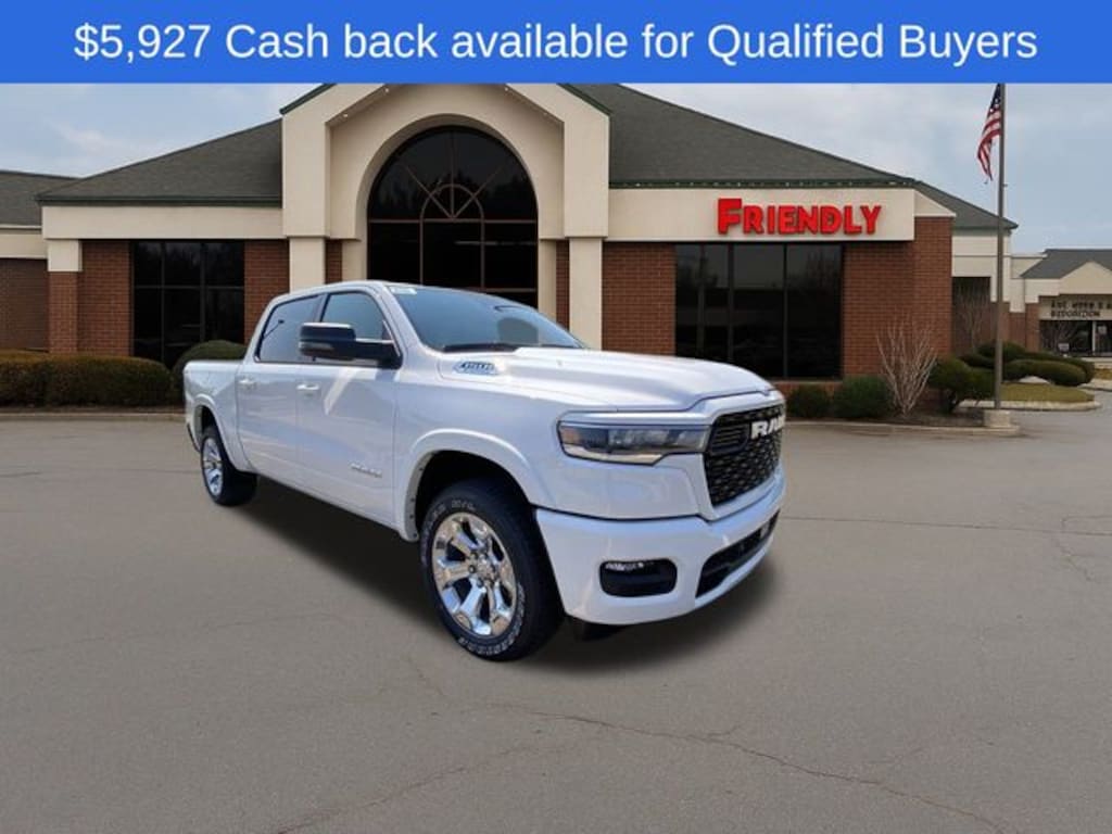 Check out all the standard equipment Big Horn Level 1 Equipment Group (115V Auxiliary Power Outlet, 2nd Row In Floor Storage Bins, 400W Inverter, Auto Power-Folding Mirrors, Auto-Dimming Exterior Driver Mirror, Auto-Dimming Rear-View Mirror, Black Exterior Mirrors, Black Premium Power Mirrors, Convex Wide-Angle Exterior Mirror Insert, Exterior Mirrors Courtesy Lamps, Exterior Mirrors w/Heating Element, Exterior Mirrors w/Supplemental Signals, Glove Box Lamp, Heated Front Seats, Heated Steering Wheel, Leather Wrapped Steering Wheel, Power 2-Way Driver Lumbar Adjust, Power Adjust 8-Way Driver Seat, Power Adjustable Pedals, Rear Power Sliding Window, Rear Window Defroster, Steering Wheel Mounted Audio Controls, Sun Visors w/Illuminated Vanity Mirrors, and Universal Garage Door Opener), Quick Order Package 23Z Big Horn (Big Horn Badge), Sport Appearance Package (3 Rear Seat Head Restraints, 4 Way Front Headrests, Black Interior Accents, Body Color Door Handles, Body Color Front Bumper, Body Color Rear Bumper w/Step Pads, Body Color Tailgate Handle, Bucket Seats, Deluxe Cloth Bucket Seats, Front Seat Back Map Pockets, Full Length Floor Console, Grille Surround 1 Body Color Texture 1 Black, Manual Adjust 4-Way Front Passenger Seat, RAM Grille Badge - Chrome, Rear 60/40 Folding Seat, and Rear Center Armrest), 3.21 Rear Axle Ratio, 4-Wheel Disc Brakes, 4G LTE Wi-Fi Hot Spot, 6 Speakers, ABS brakes, Air Conditioning, Alloy wheels, AM/FM radio, Apple CarPlay/Android Auto, Auto High-beam Headlights, Brake assist, Bumpers: chrome, Cloth Bench Seat, Compass, Connectivity - US/Canada, Delay-off headlights, Driver door bin, Dual front impact airbags, Dual front side impact airbags, Electronic Stability Control, Front anti-roll bar, Front Center Armrest w/Storage, Front fog lights, Front reading lights, Front wheel independent suspension, Fully automatic headlights, GPS Antenna Input, Heated door mirrors, Illuminated entry, Integrated Voice Command w/Bluetooth, Low tire pressure warning, Manual Folding Exterior Mirrors, Manufacturer's Statement of Origin, Occupant sensing airbag, Outside temperature display, Overhead airbag, Overhead console, Panic alarm, ParkView Rear Back-Up Camera, Passenger door bin, Passenger vanity mirror, Power door mirrors, Power steering, Power windows, Radio data system, Radio: Uconnect 5 W w/8.4" Display, Rear anti-roll bar, Rear seat center armrest, Rear step bumper, Remote keyless entry, Speed control, Split folding rear seat, Supplier Part Tracking (J-1), Tachometer, Telescoping steering wheel, Tilt steering wheel, Traction control, Trip computer, USB Host Flip, Variably intermittent wipers, Voltmeter, Wheels: 18" x 8" Cast-Aluminum Painted, and Wheels: 20" x 9" Aluminum Chrome Clad (WRK) Price includes: 10% Msrp - 2025 National 10% Below MSRP . Exp. 11/03/2025