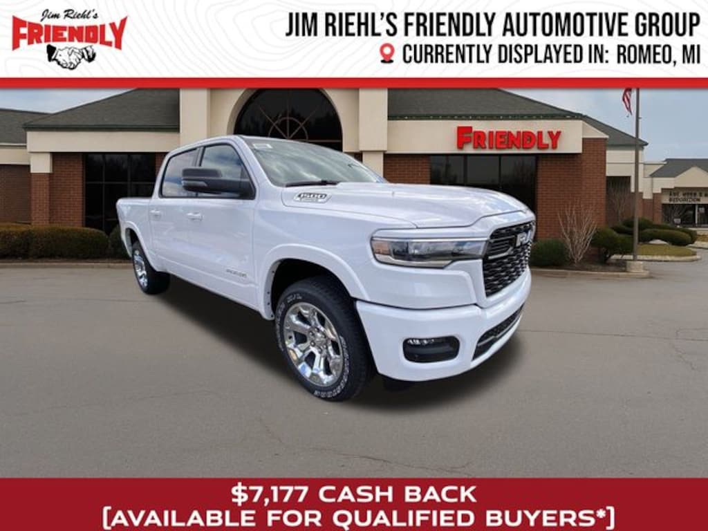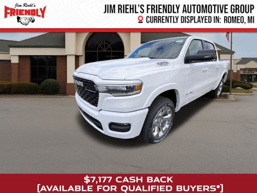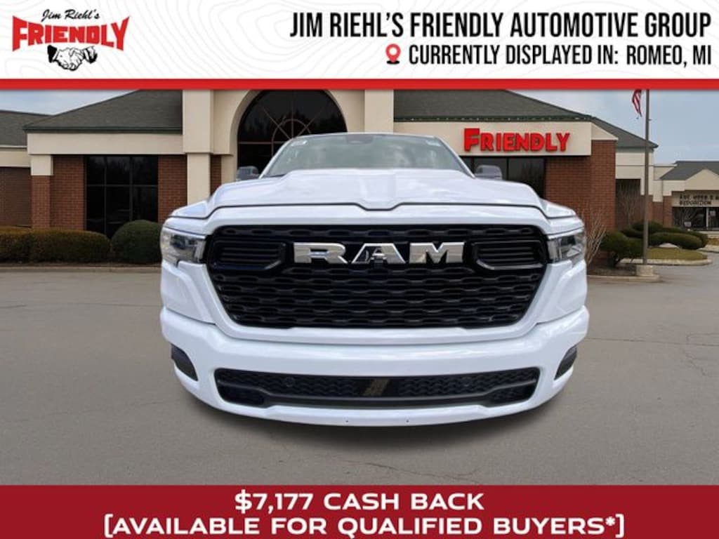 Check out all the standard equipment Big Horn Level 1 Equipment Group (115V Auxiliary Power Outlet, 2nd Row In Floor Storage Bins, 400W Inverter, Auto Power-Folding Mirrors, Auto-Dimming Exterior Driver Mirror, Auto-Dimming Rear-View Mirror, Black Exterior Mirrors, Black Premium Power Mirrors, Convex Wide-Angle Exterior Mirror Insert, Exterior Mirrors Courtesy Lamps, Exterior Mirrors w/Heating Element, Exterior Mirrors w/Supplemental Signals, Glove Box Lamp, Heated Front Seats, Heated Steering Wheel, Leather Wrapped Steering Wheel, Power 2-Way Driver Lumbar Adjust, Power Adjust 8-Way Driver Seat, Power Adjustable Pedals, Rear Power Sliding Window, Rear Window Defroster, Steering Wheel Mounted Audio Controls, Sun Visors w/Illuminated Vanity Mirrors, and Universal Garage Door Opener), Quick Order Package 23Z Big Horn (Big Horn Badge), Sport Appearance Package (3 Rear Seat Head Restraints, 4 Way Front Headrests, Black Interior Accents, Body Color Door Handles, Body Color Front Bumper, Body Color Rear Bumper w/Step Pads, Body Color Tailgate Handle, Bucket Seats, Deluxe Cloth Bucket Seats, Front Seat Back Map Pockets, Full Length Floor Console, Grille Surround 1 Body Color Texture 1 Black, Manual Adjust 4-Way Front Passenger Seat, RAM Grille Badge - Chrome, Rear 60/40 Folding Seat, and Rear Center Armrest), 3.21 Rear Axle Ratio, 4-Wheel Disc Brakes, 4G LTE Wi-Fi Hot Spot, 6 Speakers, ABS brakes, Air Conditioning, Alloy wheels, AM/FM radio, Apple CarPlay/Android Auto, Auto High-beam Headlights, Brake assist, Bumpers: chrome, Cloth Bench Seat, Compass, Connectivity - US/Canada, Delay-off headlights, Driver door bin, Dual front impact airbags, Dual front side impact airbags, Electronic Stability Control, Front anti-roll bar, Front Center Armrest w/Storage, Front fog lights, Front reading lights, Front wheel independent suspension, Fully automatic headlights, GPS Antenna Input, Heated door mirrors, Illuminated entry, Integrated Voice Command w/Bluetooth, Low tire pressure warning, Manual Folding Exterior Mirrors, Manufacturer's Statement of Origin, Occupant sensing airbag, Outside temperature display, Overhead airbag, Overhead console, Panic alarm, ParkView Rear Back-Up Camera, Passenger door bin, Passenger vanity mirror, Power door mirrors, Power steering, Power windows, Radio data system, Radio: Uconnect 5 W w/8.4" Display, Rear anti-roll bar, Rear seat center armrest, Rear step bumper, Remote keyless entry, Speed control, Split folding rear seat, Supplier Part Tracking (J-1), Tachometer, Telescoping steering wheel, Tilt steering wheel, Traction control, Trip computer, USB Host Flip, Variably intermittent wipers, Voltmeter, Wheels: 18" x 8" Cast-Aluminum Painted, and Wheels: 20" x 9" Aluminum Chrome Clad (WRK) Price includes: $1250 - 2025 Midwest BC SFS Bonus Cash . Exp. 12/01/2025 $2000 - 2025 Midwest BC SFS Retail Loyalty Bonus Cash. Exp. 12/01/2025 10% Msrp - 2025 National 10% Below MSRP . Exp. 12/01/2025