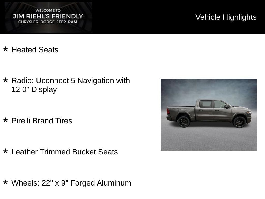 Heated Seats, Leather Trimmed Bucket Seats, Pirelli Brand Tires, Radio: Uconnect 5 Navigation with 12.0 Display, Wheels: 22 x 9 Forged Aluminum.