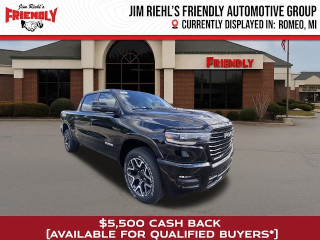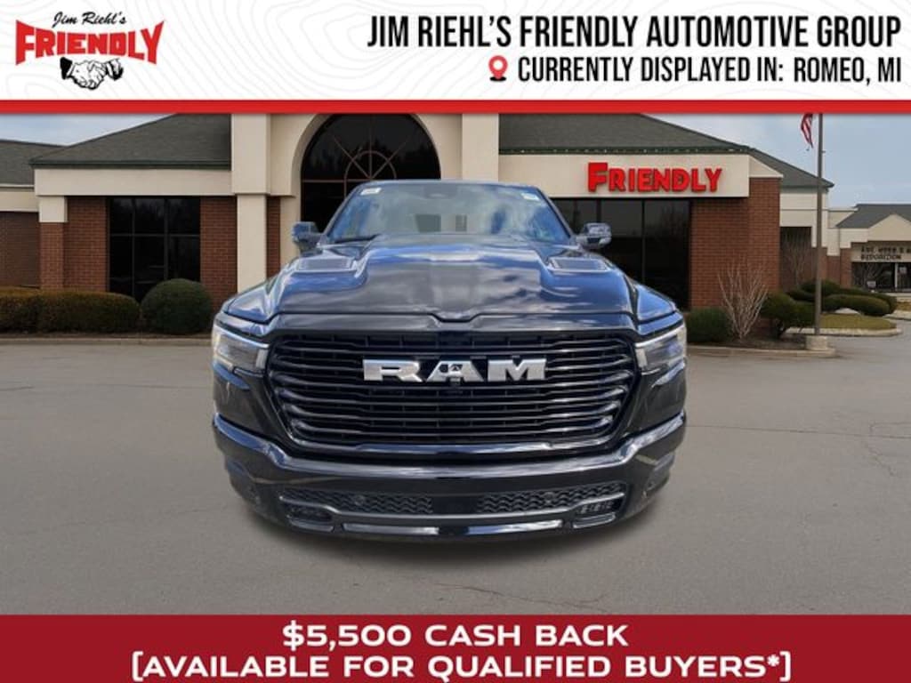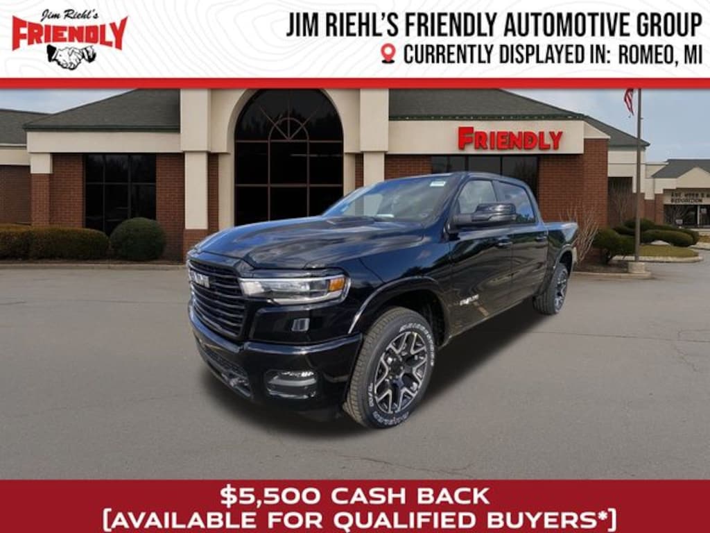 Check out all the standard equipment Laramie Level 2 Equipment Group (14.4" Touchscreen Display, 4G LTE Wi-Fi Hot Spot, Cluster 12" TFT Color Display, Connected Travel & Traffic Services, Connectivity - US/Canada, Front Passenger Interactive Display, GPS Navigation, harman/kardon 19 Speaker Premium Sound, Integrated Center Stack Radio, Integrated Voice Command w/Bluetooth, Power Tailgate, Radio: Uconnect 5 Nav w/14.4" Display, Rain Sensitive Windshield Wipers, SiriusXM Radio Service, SiriusXM w/360L, and USB Host Flip), Quick Order Package 21H Laramie, Sport Appearance Package (Accent Color Premium Power Mirrors, Auto Power-Folding Mirrors, Auto-Dimming Exterior Driver Mirror, Black Interior Accents, Black Painted Exterior Mirrors Caps, Body Color Front Bumper, Body Color Rear Bumper w/Step Pads, Bridgestone Brand Tires, Convex Wide-Angle Exterior Mirror Insert, Exterior Mirrors Courtesy Lamps, Exterior Mirrors w/Heating Element, Exterior Mirrors w/Memory, Exterior Mirrors w/Supplemental Signals, Grille Surround 3 Body Color Tex 2 Black, RAM Grille Badge - Chrome, and Sport Performance Hood), 10 Speakers, 3.55 Rear Axle Ratio, 4-Wheel Disc Brakes, ABS brakes, Active Noise Control System, Air Conditioning, Alloy wheels, AM/FM radio: SiriusXM with 360L, Apple CarPlay/Android Auto, Audio memory, Auto High-beam Headlights, Auto-dimming door mirrors, Auto-dimming Rear-View mirror, Automatic temperature control, Brake assist, Bumpers: chrome, Chrome Exterior Mirrors, Compass, Delay-off headlights, Driver door bin, Driver vanity mirror, Dual front impact airbags, Dual front side impact airbags, Electronic Stability Control, Front anti-roll bar, Front Bucket Seats, Front Center Armrest w/Storage, Front dual zone A/C, Front fog lights, Front reading lights, Front wheel independent suspension, Fully automatic headlights, Garage door transmitter, Heated door mirrors, Heated front seats, Heated rear seats, Heated steering wheel, Illuminated entry, Leather steering wheel, Leather Trimmed Bucket Seats, Low tire pressure warning, Manufacturer's Statement of Origin, Memory seat, MOPAR Front & Rear Rubber Floor Mats, Navigation System, Occupant sensing airbag, Off-Road Information Pages, Outside temperature display, Overhead airbag, Overhead console, Panic alarm, ParkView Rear Back-Up Camera, Passenger door bin, Passenger vanity mirror, Power door mirrors, Power driver seat, Power passenger seat, Power steering, Power windows, Radio data system, Radio: Uconnect 5 Nav w/12.0" Display, Rear anti-roll bar, Rear reading lights, Rear seat center armrest, Rear step bumper, Remote keyless entry, Security system, Speed control, Split folding rear seat, Steering wheel mounted audio controls, Tachometer, Telescoping steering wheel, Tilt steering wheel, Traction control, Trip computer, Turn signal indicator mirrors, Variably intermittent wipers, Ventilated front seats, Voltmeter, and Wheels: 20" x 9" Premium Paint/Polish. Price includes: $2000 - 2026 National SFS Lease Loyalty Bonus Cash . Exp. 12/01/2025 $3500 - 2026 National Retail Consumer Cash . Exp.