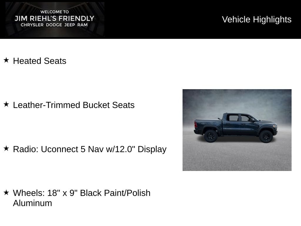 Heated Seats, Leather-Trimmed Bucket Seats, Radio: Uconnect 5 Nav w/12.0 Display, Wheels: 18 x 9 Black Paint/Polish Aluminum.