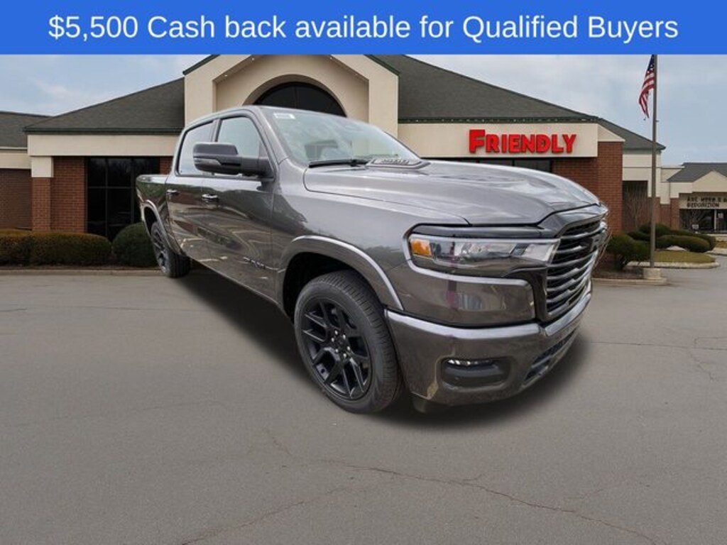 Check out all the standard equipment Laramie Level 2 Equipment Group (14.4" Touchscreen Display, 4G LTE Wi-Fi Hot Spot, Apple CarPlay, Cluster 12" TFT Color Display, Connected Travel & Traffic Services, Connectivity - US/Canada, Disassociated Touchscreen Display, Dual Wireless Charging Pad, Front Passenger Interactive Display, Global Telematics Box Module (TBM), Google Android Auto, GPS Antenna Input, GPS Navigation, harman/kardon 19 Speaker Premium Sound, HD Radio, Integrated Center Stack Radio, Integrated Voice Command w/Bluetooth, Power Tailgate, Radio: Uconnect 5 Nav w/14.4" Display, Rain Sensitive Windshield Wipers, Secondary Active Grille Shutters, SiriusXM Radio Service, SiriusXM w/360L, Smartphone As A Key Capable, and USB Host Flip), Night Edition (Accent Color Door Handles, Accent Color Premium Power Mirrors, Accent Color Tailgate Handle, Anti-Spin Differential Rear Axle, Auto Power-Folding Mirrors, Auto-Dimming Exterior Driver Mirror, Black Exterior Truck Badging, Black Headlamp Bezels, Black Interior Accents, Black Painted Exterior Mirrors Caps, Black Tail Lamp Bezels, Body Color Front Bumper, Body Color Rear Bumper w/Step Pads, Convex Wide-Angle Exterior Mirror Insert, Dual Exhaust w/Black Tips, Exterior Mirrors Approach Lamps, Exterior Mirrors Courtesy Lamps, Exterior Mirrors w/Heating Element, Exterior Mirrors w/Memory, Exterior Mirrors w/Supplemental Signals, Grille Surround 3 Black Texture 2 Black, Pirelli Brand Tires, Proximity Approach/Departure Lamps, RAM Grille Badge - Black, Sport Performance Hood, and Wheels: 22" x 9" Forged Aluminum), Quick Order Package 21H Laramie, 10 Speakers, 3.55 Rear Axle Ratio, 4-Wheel Disc Brakes, ABS brakes, Active Noise Control System, Air Conditioning, Alloy wheels, AM/FM radio: SiriusXM with 360L, Apple CarPlay/Android Auto, Audio memory, Auto High-beam Headlights, Auto-dimming door mirrors, Auto-dimming Rear-View mirror, Automatic temperature control, Brake assist, Bumpers: chrome, Chrome Exterior Mirrors, Compass, Delay-off headlights, Driver door bin, Driver vanity mirror, Dual front impact airbags, Dual front side impact airbags, Electronic Stability Control, Front anti-roll bar, Front Bucket Seats, Front Center Armrest w/Storage, Front dual zone A/C, Front fog lights, Front reading lights, Front wheel independent suspension, Fully automatic headlights, Garage door transmitter, Heated door mirrors, Heated front seats, Heated rear seats, Heated steering wheel, Illuminated entry, Leather steering wheel, Leather Trimmed Bucket Seats, Low tire pressure warning, Manufacturer's Statement of Origin, Memory seat, MOPAR Front & Rear Rubber Floor Mats, Navigation System, Occupant sensing airbag, Off-Road Information Pages, Outside temperature display, Overhead airbag, Overhead console, Panic alarm, ParkView Rear Back-Up Camera, Passenger door bin, Passenger vanity mirror, Power door mirrors, Power driver seat, Power passenger seat, Power steering, Price includes: $2000 - 2026 National Overaged Select Inventory Bonus Cash . Exp. 11/03/2025 $3500 - 2026 National Retail Consumer C