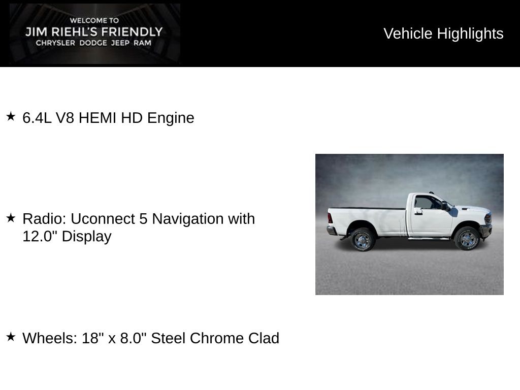 6.4L V8 HEMI HD Engine, Radio: Uconnect 5 Navigation with 12.0 Display, Wheels: 18 x 8.0 Steel Chrome Clad.