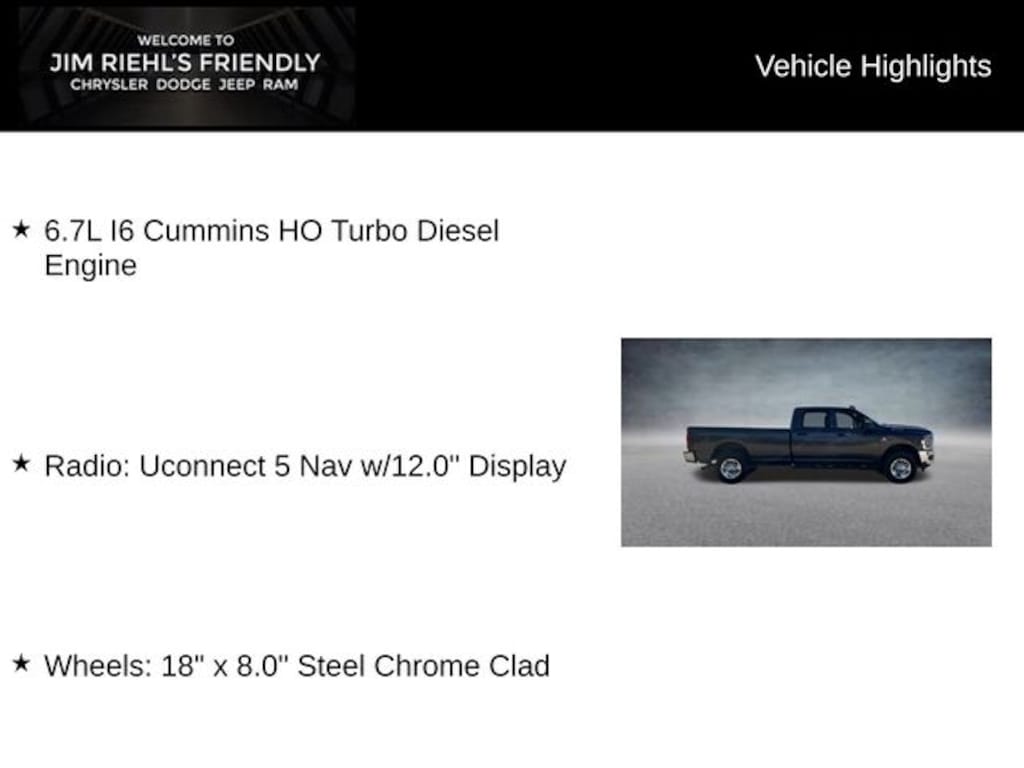 6.7L I6 Cummins HO Turbo Diesel Engine, Radio: Uconnect 5 Nav w/12.0 Display, Wheels: 18 x 8.0 Steel Chrome Clad.