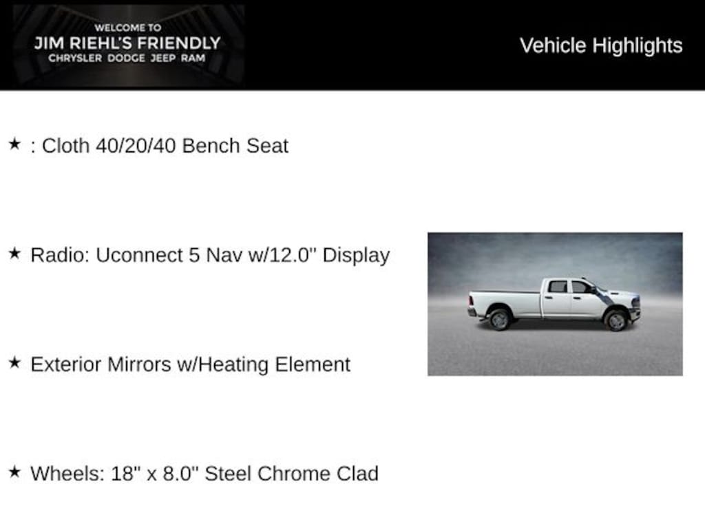 : Cloth 40/20/40 Bench Seat, Exterior Mirrors w/Heating Element, Radio: Uconnect 5 Nav w/12.0 Display, Wheels: 18 x 8.0 Steel Chrome Clad.