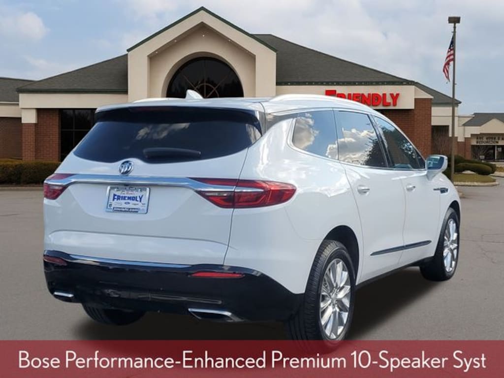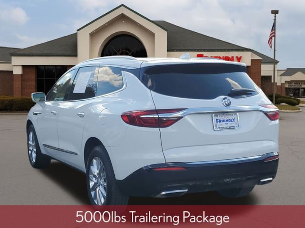 Check out all the standard equipment 5000lbs Trailering Package (Heavy-Duty Cooling System), Buick Interior Protection Package (LPO) (3rd Row All-Weather Floor Mats, All-Weather Cargo Mat (LPO), and All-Weather Floor Mats), Memory Package, Preferred Equipment Group 1SN, Premium Package (Bose Performance-Enhanced Premium 10-Speaker Syst, Heated 2nd Row Outboard Seats, Heated Driver & Front Passenger Seats, Heated Steering Wheel, 120-Volt Power Outlet, 3rd Row 60/40 Power Fold Split-Bench, HD Radio, Outside Heated Power-Adjustable Mirrors, Power Tilt & Telescopic Steering Column, and Ventilated Driver & Front Passenger Seats), Enclave Premium Group, 4D Sport Utility, 3.6L V6 SIDI VVT, 9-Speed Automatic, AWD, Summit White, Dark Galvanized Leather, Apple CarPlay/Android Auto, Front Power Sliding Moonroof, Heated front seats, Heated rear seats, Navigation System, Power Liftgate, 10 Speakers, 18" Painted Aluminum Wheels, 20" Polished Aluminum Wheels, 3.49 Axle Ratio, 3rd row seats: split-bench, 4-Wheel Disc Brakes, 7-Passenger Seating, ABS brakes, Air Conditioning, Alloy wheels, AM/FM radio: SiriusXM, Audio memory, Auto High-beam Headlights, Auto tilt-away steering wheel, Auto-dimming door mirrors, Auto-dimming Rear-View mirror, Automatic temperature control, Brake assist, Bumpers: body-color, Compass, Delay-off headlights, Driver door bin, Driver vanity mirror, Dual front impact airbags, Dual front side impact airbags, Electronic Stability Control, Emergency communication system: OnStar Guidance, Four wheel independent suspension, Front anti-roll bar, Front Bucket Seats, Front Center Armrest, Front dual zone A/C, Front reading lights, Fully automatic headlights, Garage door transmitter, Heated door mirrors, Heated steering wheel, Illuminated entry, Leather steering wheel, Low tire pressure warning, Memory seat, Occupant sensing airbag, Outside temperature display, Overhead airbag, Overhead console, Panic alarm, Passenger door bin, Passenger vanity mirror, Perforated Leather-Appointed Seat Trim, Power door mirrors, Power Driver Lumbar Control Seat Adjuster, Power driver seat, Power Passenger Lumbar Control Seat Adjuster, Power passenger seat, Power steering, Power windows, Premium audio system: Buick Infotainment System, Radio data system, Radio: Buick Infotainment Sys AM/FM Stereo w/Nav, Radio: Buick Infotainment System AM/FM Stereo, Rear air conditioning, Rear anti-roll bar, Rear reading lights, Rear window defroster, Rear window wiper, Remote keyless entry, Roof rack: rails only, Security system, SiriusXM Satellite Radio, Speed contr