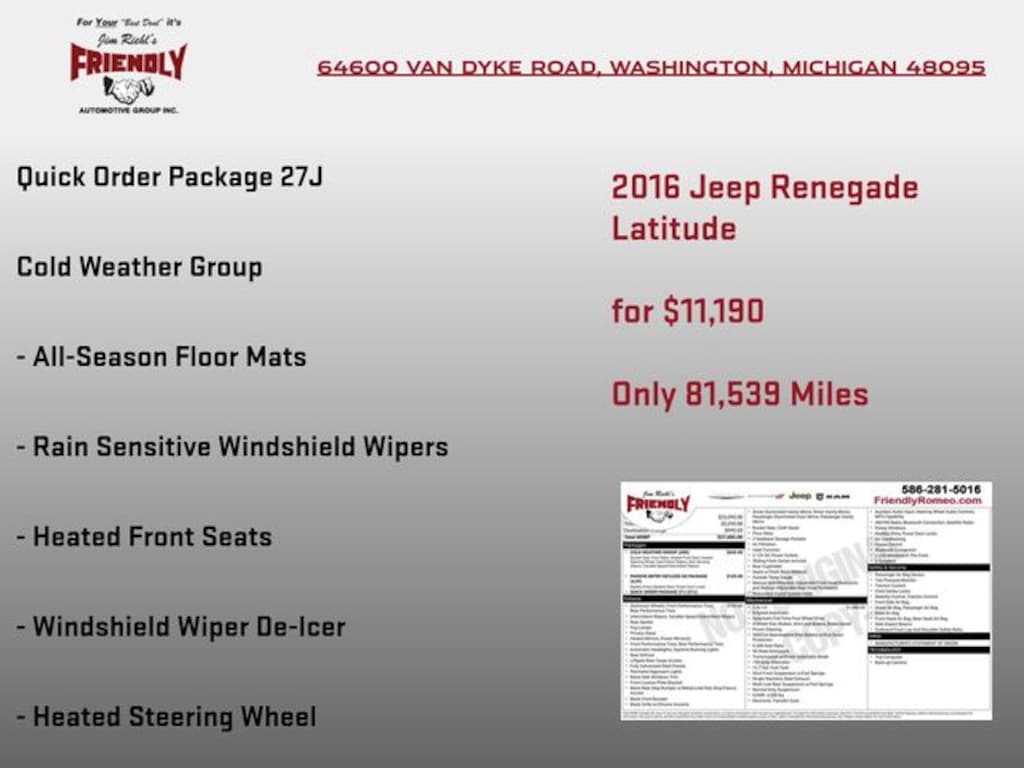 For Your "Best Deal" it's Jim Riehl's Friendly of Romeo. Browse our online inventory, schedule a test drive, get your trade appraised or investigate finance options. All hassle free! Value Market Pricing and Free CarFax with every vehicle.