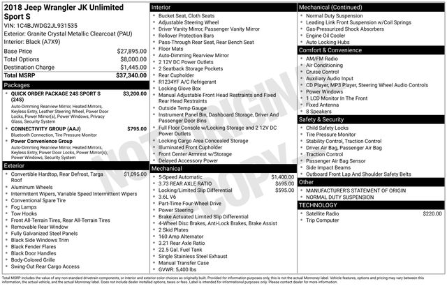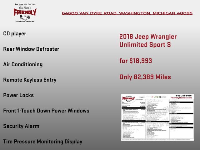2018 Jeep Wrangler JK Unlimited Sport 4x4 SUV