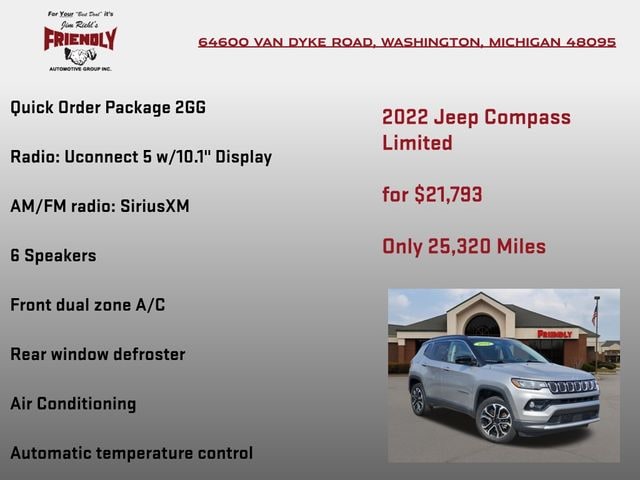 Elevate your commute and your lifestyle with the 2022 Jeep Compass Limited. With its exceptional blend of style, capability, and technology, this SUV is the perfect choice for those who demand the best. Visit our showroom today and experience the difference for yourself.