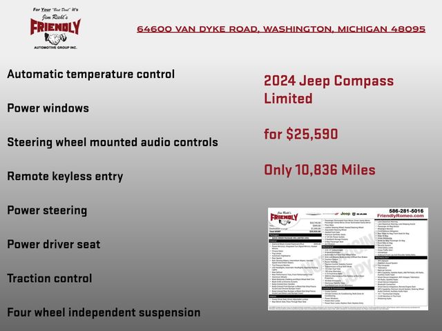 Discover the ultimate balance of style, capability, and technology in the 2024 Jeep Compass Limited. Experience the difference for yourself and visit our showroom today. We're confident this exceptional SUV will exceed your expectations and become the perfect companion for your adventures.