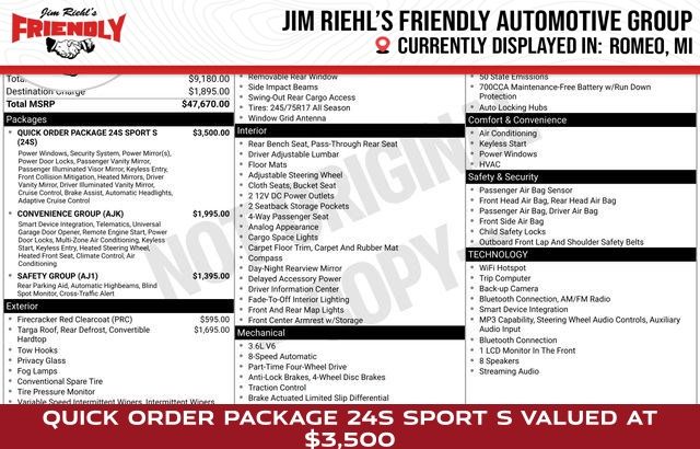Whether you're tackling the trails or navigating the city streets, the 2024 Jeep Wrangler Sport S delivers the perfect blend of capability, comfort, and style. With its impressive fuel efficiency of 18 MPG city and 23 MPG highway, this Wrangler offers the perfect balance of power and efficiency to meet your diverse driving needs.