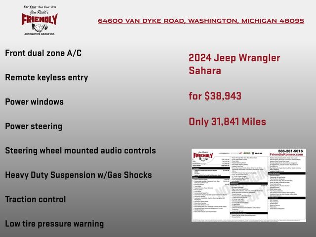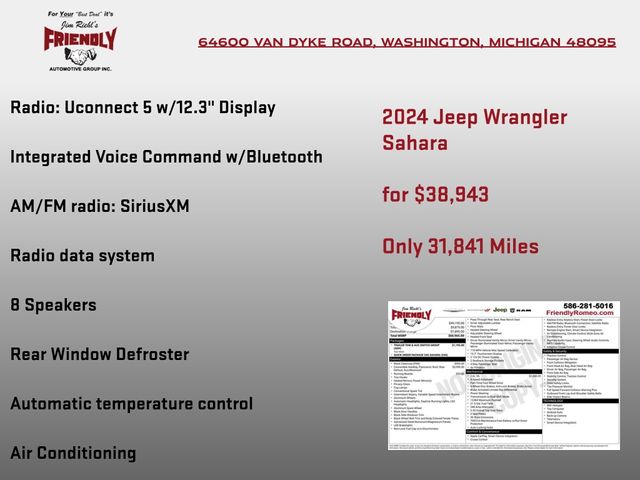This 2024 Jeep Wrangler Sahara is the perfect blend of off-road prowess and on-road refinement. With its impressive features and uncompromising Jeep brand heritage, it's the ultimate choice for those seeking a versatile and capable SUV. Experience the thrill of the open road and the freedom of the great outdoors â" schedule a test drive today and discover the true power of the Wrangler Sahara.