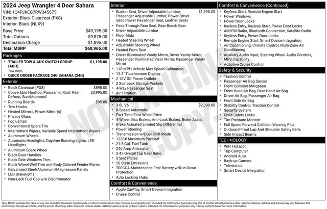 Elevate your driving experience with this exceptional 2024 Jeep Wrangler Sahara. Boasting a bold and capable design, this off-road-ready SUV is the perfect companion for your adventures.
