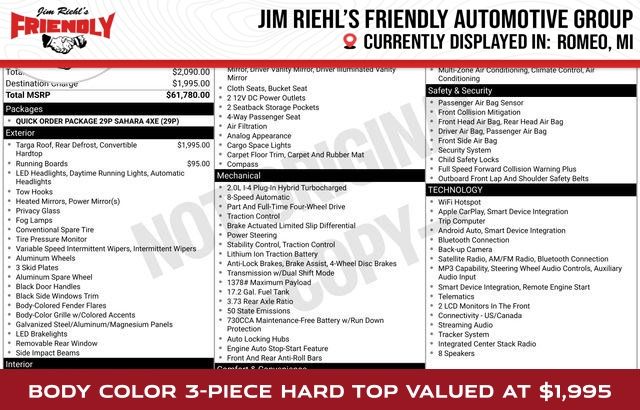 We invite you to experience the power and versatility of the Wrangler Sahara 4xe for yourself. Visit our showroom today and let our knowledgeable team guide you through this exceptional vehicle. Discover the freedom and excitement that only a Jeep can deliver.