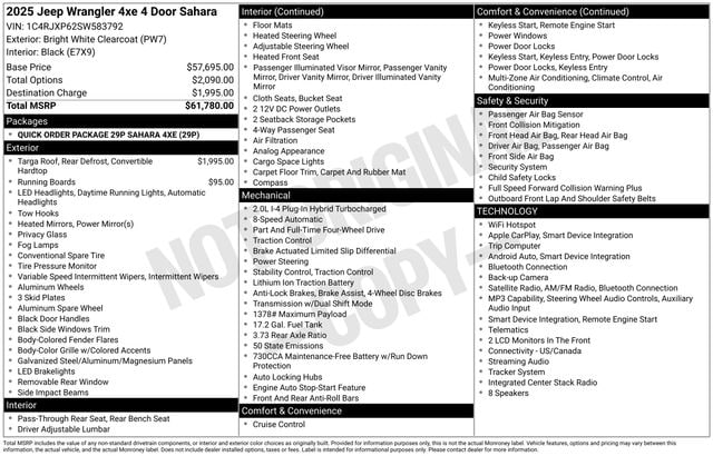 Discover the ultimate combination of power, efficiency, and style with the 2025 Jeep Wrangler Sahara 4xe. This exceptional off-road icon has been meticulously crafted to deliver an unparalleled driving experience, both on the open road and the untamed wilderness.