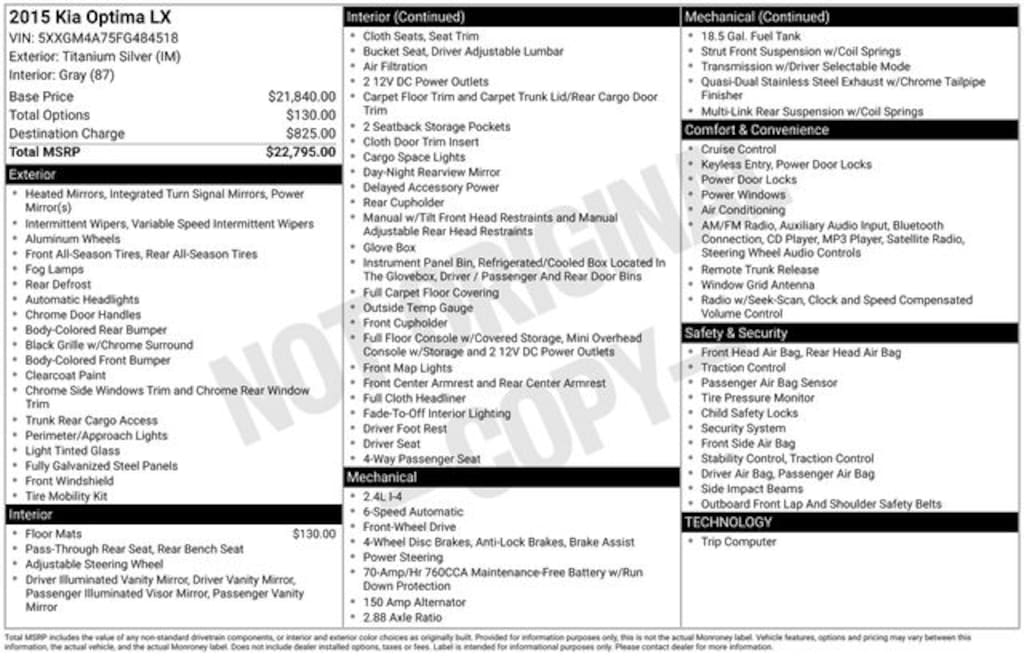 2015 Kia Optima LX Titanium Silver LX 2.4L I4 DGI DOHC 6-Speed Automatic with Sportmatic FWD 23/34 City/Highway MPG