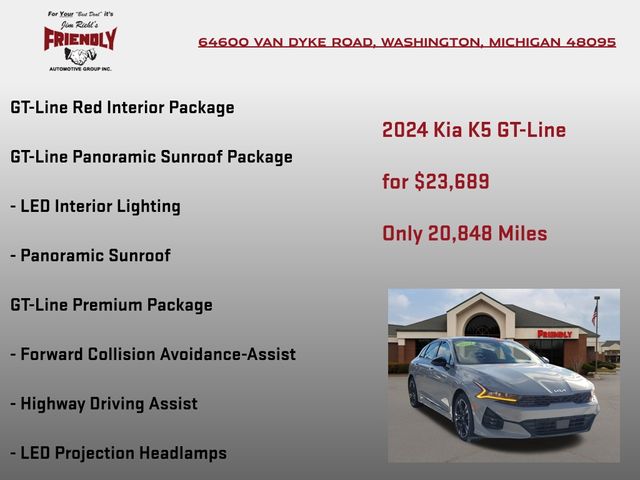 Whether you're seeking a dynamic daily driver or a stylish weekend companion, the 2024 Kia K5 GT-Line is the perfect choice. With its exceptional performance, cutting-edge features, and stunning design, this sedan is poised to exceed your expectations and elevate your driving experience to new heights. Visit our showroom today to witness the power and sophistication of the K5 GT-Line for yourself.