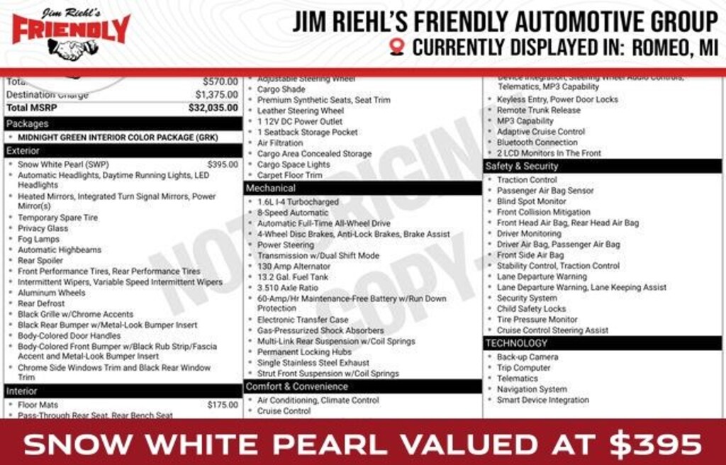 We encourage you to browse our online inventory, schedule a test drive, investigate financing options, or get your trade appraised. You can also request more information about a vehicle using our online Contact Us form or by calling us. At Jim Riehlâs Friendly of Romeo we have taken every measure to ensure that our dealerships offer the very best new and used car buying experience. With so much to offer it's no wonder so many Metro Detroit Michigan residents have relied on Jim Riehl's Friendly of Romeo for all of their automotive needs.