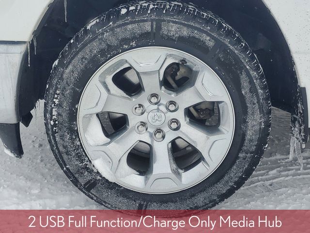 Clean CARFAX. Priced below KBB Fair Purchase Price! 1500 Big Horn/Lone Star, 4D Crew Cab, HEMI 5.7L V8 Multi Displacement VVT, 8-Speed Automatic, 4WD, Bright White Clearcoat, Diesel Gray/Black Cloth, 115V Auxiliary Power Outlet, 115V Auxiliary Rear Power Outlet, 2 USB Full Function/Charge Only Media Hub, 2nd Row In Floor Storage Bins, 3 Rear Seat Head Restraints, 3.21 Rear Axle Ratio, 4 Way Front Headrests, 4-Wheel Disc Brakes, 400W Inverter, 48V Belt Starter Generator, 6 Speakers, ABS brakes, Air Conditioning, Air Conditioning ATC w/Dual Zone Control, Alloy wheels, AM/FM radio, Anti-Spin Differential Rear Axle, Auto-Dimming Rear-View Mirror, Big Horn Badge, Big Horn IP Badge, Big Horn Level 2 Equipment Group, Black Premium Power Mirrors, Brake assist, Bumpers: chrome, Class IV Receiver Hitch, Cloth Bench Seat, Compass, Dampened Tailgate, Delay-off headlights, Driver door bin, Dual front impact airbags, Dual front side impact airbags, Electronic Stability Control, Foam Bottle Insert (Door Trim Panel), Front anti-roll bar, Front Center Armrest w/Storage, Front fog lights, Front reading lights, Front Seat Back Map Pockets, Front wheel independent suspension, Fully automatic headlights, Glove Box Lamp, GPS Antenna Input, Heated door mirrors, Heated Front Seats, Heated Steering Wheel, Illuminated entry, Leather steering wheel, Low tire pressure warning, Occupant sensing airbag, Outside temperature display, Overhead airbag, Overhead console, Panic alarm, ParkSense Front/Rear Park Assist w/Stop, ParkView Rear Back-Up Camera, Passenger door bin, Passenger vanity mirror, Power 4-Way Driver Lumbar Adjust, Power 8-Way Driver Seat, Power Adjustable Pedals, Power door mirrors, Power steering, Power windows, Quick Order Package 25Z Big Horn, Radio data system, Radio: Uconnect 3 w/5" Display, Radio: Uconnect 4 w/8.4" Display, Rear 60/40 Folding Seat, Rear anti-roll bar, Rear Dome w/On/Off Switch Lamp, Rear Power Sliding Window, Rear seat center armrest, Rear step bumper, Rear Wheelhouse Liners, Rear Window Defroster, Remote keyless entry, Remote Start System, Security Alarm, SiriusXM Satellite Radio, Speed control, Split folding rear seat, Steering wheel mounted audio controls, Sun Visors w/Illuminated Vanity Mirrors, Tachometer, Telescoping steering wheel, Tilt steering wheel, Trip computer, Universal Garage Door Opener, Variably intermittent wipers, Voltmeter, Wheels: 18" x 8" Cast-Aluminum Painted, Wheels: 20" x 9" Aluminum Chrome Clad (WRK).