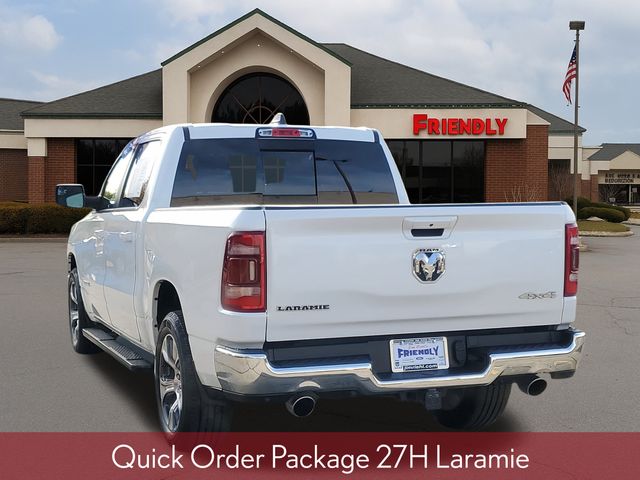 Check out all the standard equipment Laramie Level 1 Equipment Group (12" Touchscreen Display, 2nd Row In Floor Storage Bins, 4G LTE Wi-Fi Hot Spot, Apple CarPlay, Auto High Beam Headlamp Control, Blind Spot & Cross Path Detection, Connected Travel & Traffic Services, Connectivity - US/Canada, Disassociated Touchscreen Display, Electric Shift-On-Demand Transfer Case, Foam Bottle Insert (Door Trim Panel), For Details, Visit DriveUconnect.com, For More Info, Call 800-643-2112, Front Door Accent Lighting, Front LED Fog Lamps, Global Telematics Box Module (TBM), Google Android Auto, GPS Antenna Input, GPS Navigation, HD Radio, Integrated Center Stack Radio, Integrated Voice Command w/Bluetooth, LED Reflector Headlamps, ParkSense Front/Rear Park Assist w/Stop, Radio: Uconnect 5 Nav w/12.0" Display, Rain Sensitive Windshield Wipers, Rear Door Accent Lighting, Rear Power Sliding Window, Rear Window Defroster, Remote Tailgate Release, SiriusXM Radio Service, SiriusXM w/360L, and USB Host Flip), Quick Order Package 27H Laramie, 1500 Laramie, 4D Crew Cab, HEMI 5.7L V8 Multi Displacement VVT eTorque, 8-Speed Automatic, 4WD, Ivory White Tri-Coat Pearlcoat, Black Leather, Apple CarPlay/Android Auto, Driver Seat Memory, Heated Front Seats, Heated front seats, Heated Steering Wheel, Heated steering wheel, ParkView Rear Back-Up Camera, Pedal memory, Power driver seat, Ventilated Front Seats, Ventilated front seats, Wheels: 20" x 9" Premium Paint/Polished, #1 Seat Foam Cushion, 10 Speakers, 3 Rear Seat Head Restraints, 3.21 Rear Axle Ratio, 4 Way Fro