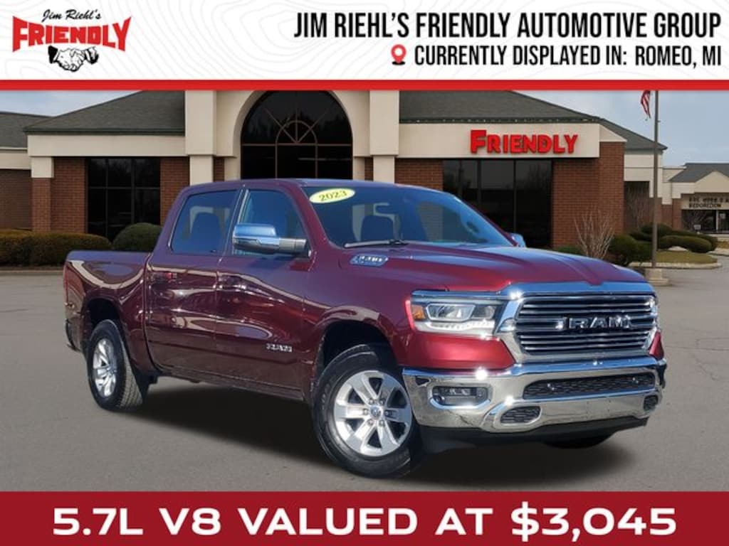 2023 Ram 1500 Laramie Delmonico Red Pearlcoat Laramie HEMI 5.7L V8 Multi Displacement VVT eTorque 8-Speed Automatic 4WD 17/22 City/Highway MPG